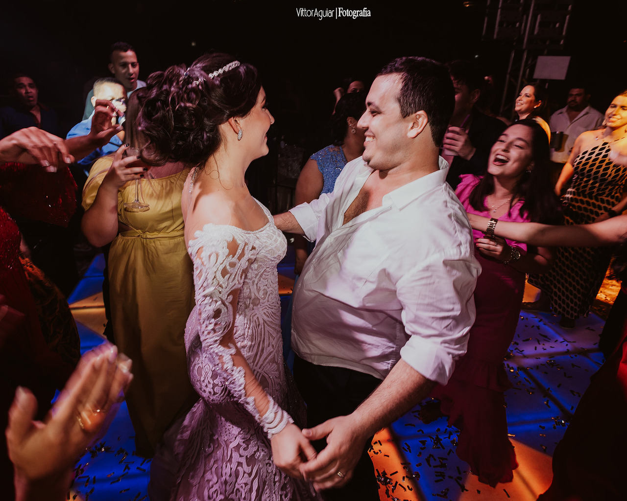 A principal atração da festa é o casal e quando eles estão dispostos a dançar e celebrar com os amigos, a noite logo se agita!