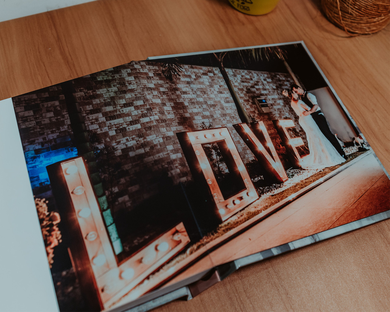 Tem algo mais especial do que um álbum de fotos contando a história de vocês? Desde as primeiras fotos tiradas juntos até as fotos do pré-wedding, você pode até inserir bilhetinhos e prints de mensagens românticas que trocaram.