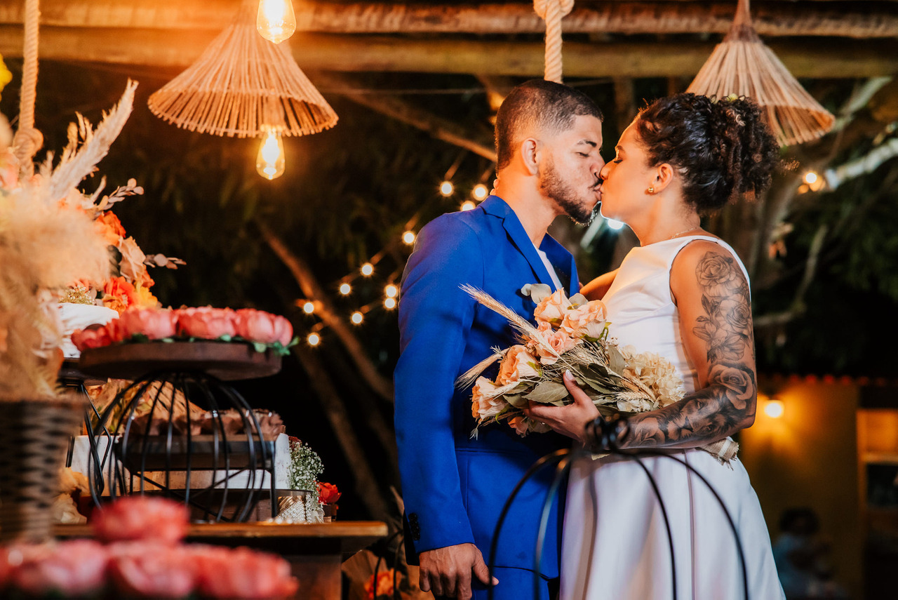 - Romantismo Sutil: a tonalidade Peach Fuzz exala romantismo sutil, proporcionando uma base calorosa e suave para a atmosfera do casamento. Utilizar essa cor em detalhes como flores, decoração e até mesmo nos trajes dos noivos adiciona um toque romântico sem ser excessivamente vibrante, resultando em fotografias que transmitem calma e ternura.